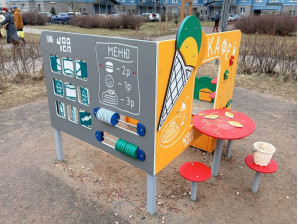 Модель включает в себя развивающие игры, бизибордами в количестве 10 шт. Игровая модель «Кафе» состоит из трех игровых модулей, крепящихся на каркас