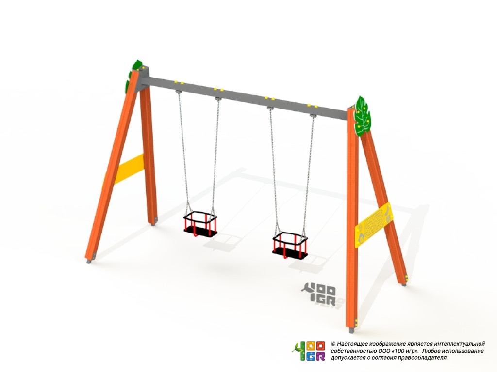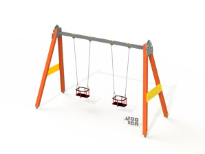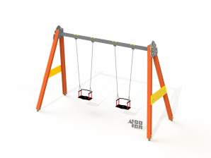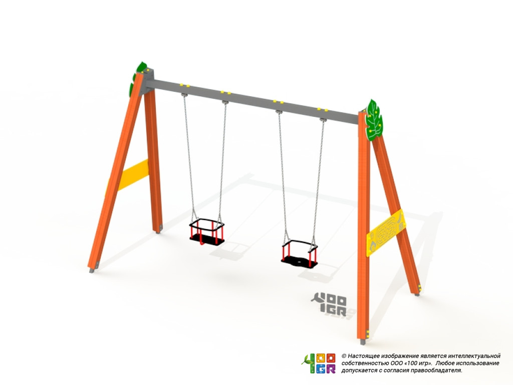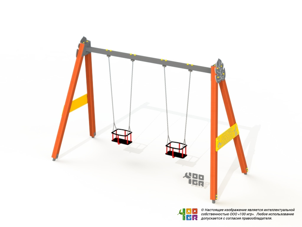 Качели двойные деревянные с люльками