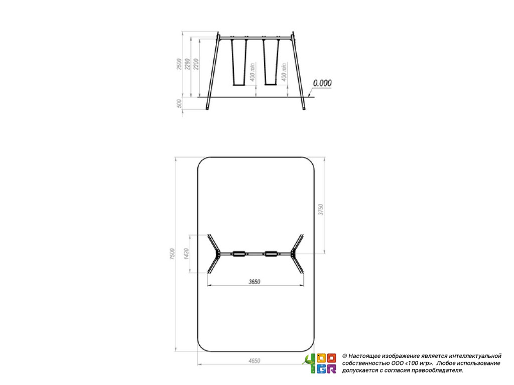 Габариты: 3650х1420х2500 мм. Допустимая нагрузка на 1 подвес - 80 кг.