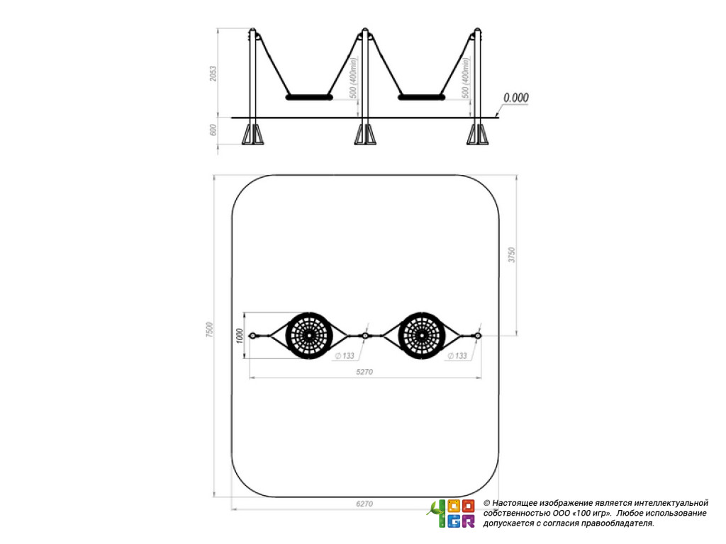 Столб выполнен из трубы диаметром 133 мм, полимерное покрытие. Допустимая нагрузка на 1 гнездо - 120 кг.