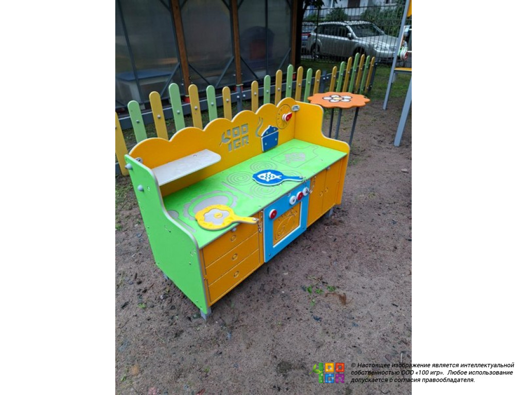 Детская игровая модель представляет собой модульную конструкцию. Конструкция представляет собой тематическую пространственную фигуру в виде кухонного модуля. Предназначенной для детей в возрасте от 1 до 7 лет.