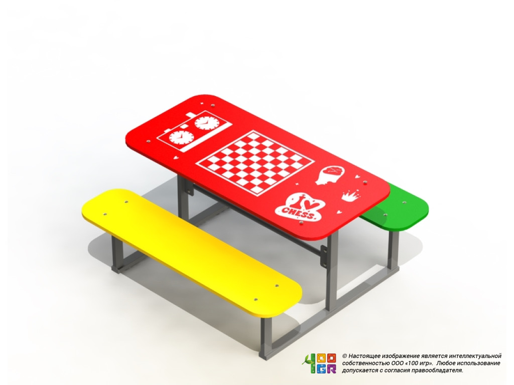 Рама скамеек изготовлена из металлического профиля 50х25х2 мм и 60х40х2мм. Сиденья, столик изготовлены из разноцветного тисненного ПНД толщиной 12 и 15 мм, устойчивого к атмосферным и ультрафиолетовым воздействиям.